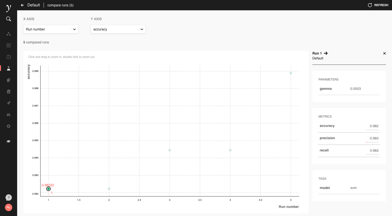mlflow.log_metric("accuracy", 0.98)